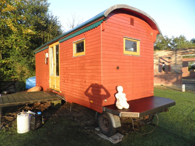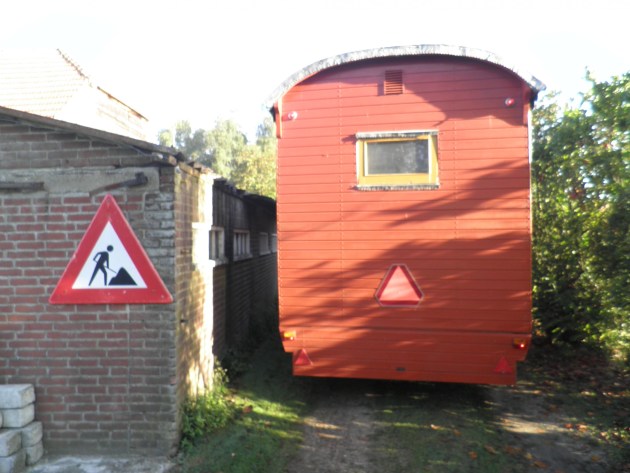 We hebben de wagen zonder ongelukken teruggebracht. Er moet nog veel gebeuren. De remkabel moet verlengd, de rem in de dissel gereviseerd, de gasslang, waterslang en elektrische kabel moeten worden verlegd, het onderstel moet schoongemaakt en behandeld, de banden moeten worden vervangen, de luchtvering opnieuw aangesloten, de knipperlichten moeten gemaakt. En dan al het timmerwerk nog. Op het fonkelnieuwe vloertje wil ik een kast bouwen, over de hele breedte van de wagen. Het zal tegelijkertijd ook dienstdoen als bankje. Zal het ooit zover komen dat we het als bok gaan gebruiken, of wordt het toch een tractor… Misschien wordt het wel een  heel andere wagen dan deze… We hebben de tijd, voor die vraag een antwoord krijgt. Rustig aan, dan breekt het lijntje niet.