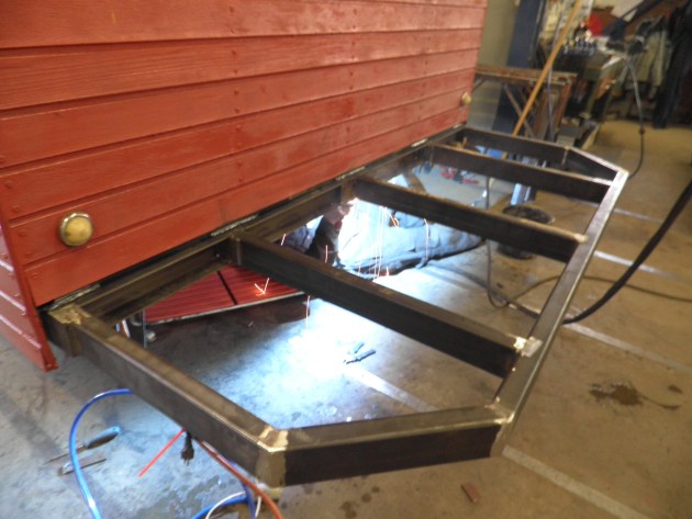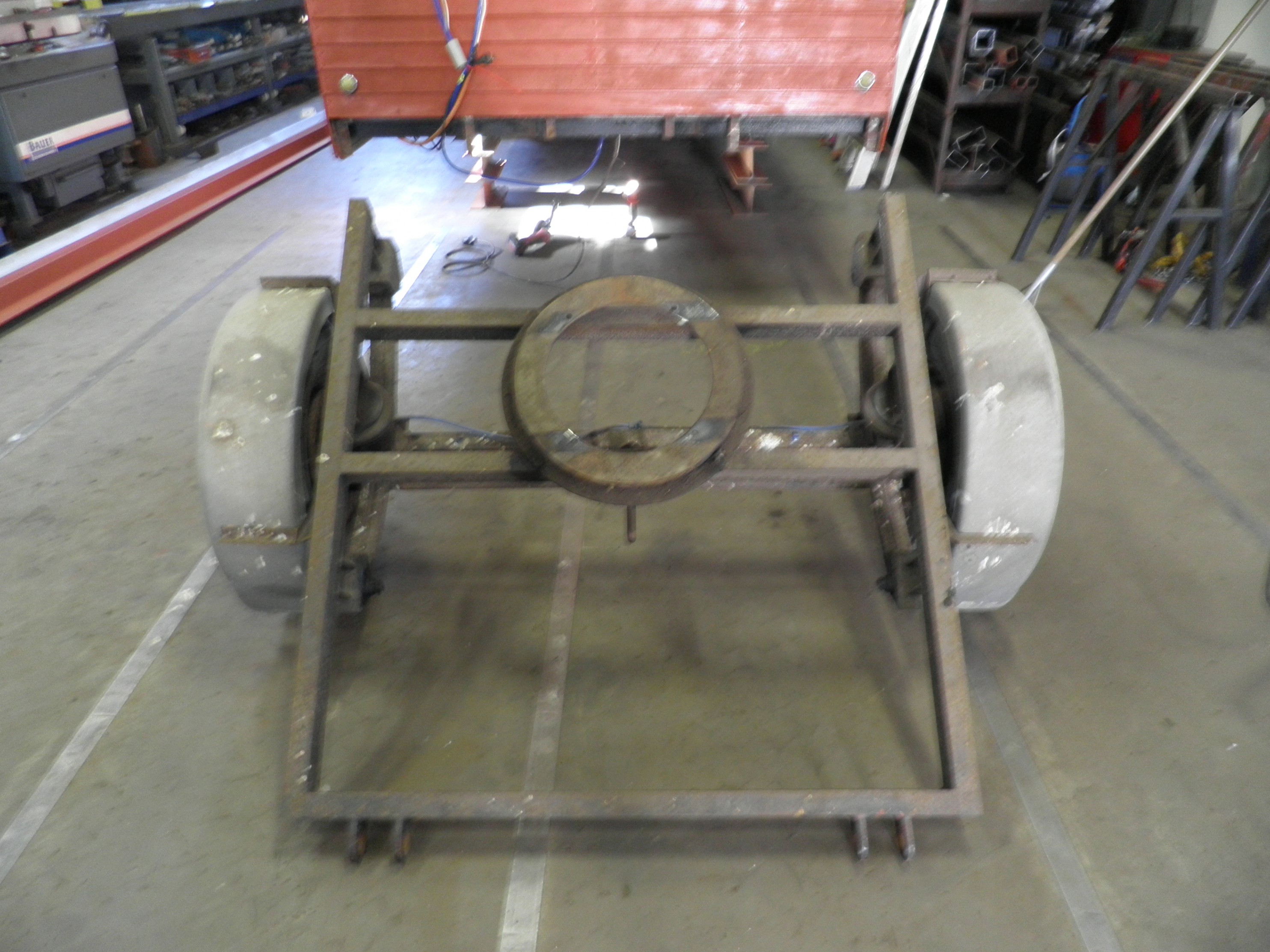 Ik besef hoe mooi alles vandaag weer samen komt. De smid en de voerman ontmoet ik in één dag. Alle kennis die ik zocht is hier aanwezig. Het onderstel is vandaag verlengd, en er ligt een prachtig vloertje klaar om op te bouwen. De as met de wielen en de draaikrans waar de dissel aan vast zit is naar voren gezet.