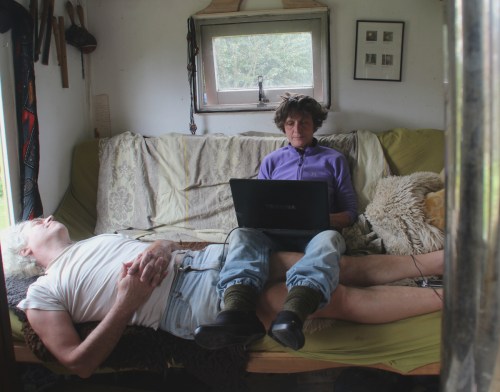 Ik heb deurknoppen gemaakt van schijfjes hout. Grote schijfjes van meranti en kleine van essenhout eronder. Alles is klaar. Ze zitten hartstikke vast en ik kijk er tevreden naar. Op de vensterbank ligt nog wat. Ik heb vier schijfjes meranti over. Ik kijk naar boven. Op de hoekplank, vlak bij mijn hoofd ligt een mannetje, een mannetje van hout, met een zwart hoedje op en beentjes van ijzerdraad, omwikkeld met touw. Hij zit op een stukje rondhout, maar hij valt steeds om, al zet ik hem recht.