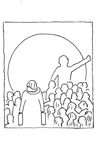 “Zal ik later terug komen?” roep ik naar de boer, maar ik krijg geen reactie. Zijn rode krullenbol steekt hoog boven de kinderhoofden uit en hij begint te vertellen.