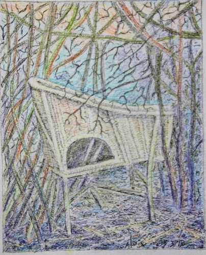Ik stel me voor hoe het is, als ik hier straks weg ben. Meesjes hippen er in en omheen, pikken er rietjes uit voor hun nesten. Ze kijken overal rond, op zoek naar de heerlijke zonnebloempitten die daar te vinden waren. Maar die zijn er niet meer. Ook niet tussen de struiken, die ik daar plantte en die steeds meer overwoekerd raken door kweekgras en brandnetel. Alowieke is weg.
