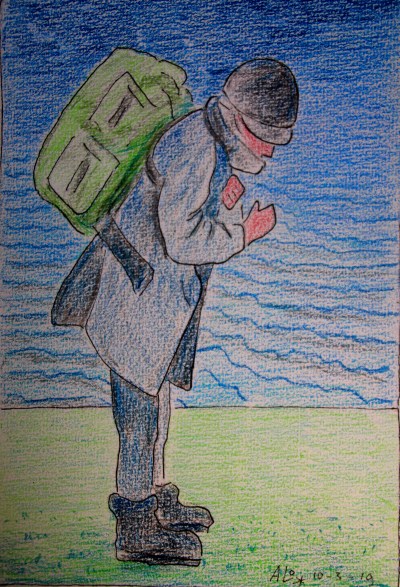 Opeens hoor ik achter me twee jongens grinniken. “Heeft u wèl geld gehad?” Ik begrijp het eerst niet en antwoord het eerste wat in me op komt: “Ik heb een voorraad eten in geslagen. Dat zit in mijn rugzak.”