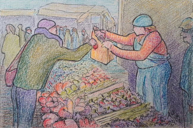 We lopen terug naar de weg. Jeroen slaat af naar links, hij gaat Sjoerd helpen met mest scheppen. Christien en ik bekijken de permacultuurtuin. Het is een klein stuk grond, in de vorm van een driehoek. Van alle kanten is het omringt door riet, en aan één kant glinstert het water, dat van daaruit in een natuurlijke bocht verder stroomt. Hier en daar die ik een ondiepe, zelfgegraven greppel. Ik pak de zwarte grond in mijn hand en het voelt soepel en vochtig aan. We wandelen langs de palmkolen en prei en kijken naar de kersenbomen, die nog niet in bloei staan. We kijken onze ogen uit. Wat een prachtig plekje.