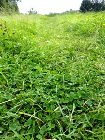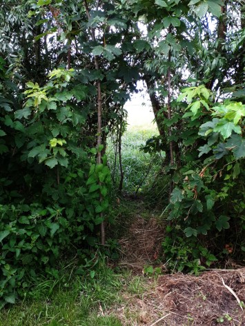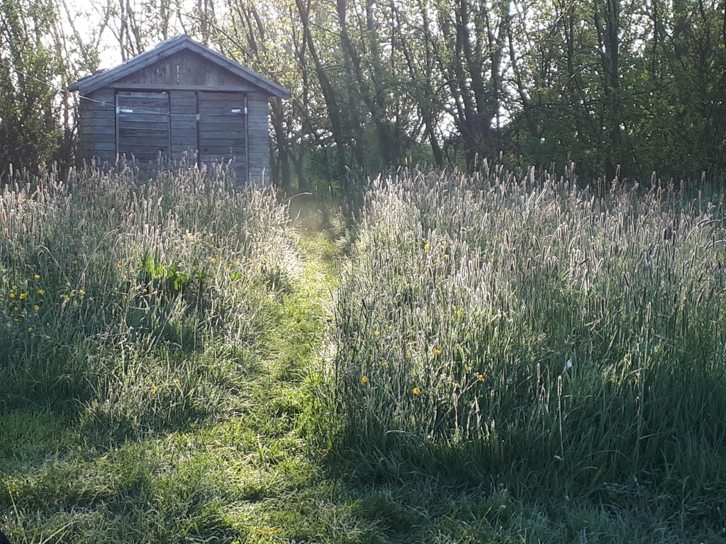 .Ik werk en wacht. Ik praat met bezige buren. Sommigen zijn met dezelfde dingen bezig als ik. Daar put een mens moed uit. Zo sta ik de volgende dag fris weer op. Ik adem in en uit en onderhoud de paden. En niet voor niets! Het is voor de klaver die de ruimte krijgt. Voor de haas, die graag eens iets anders eet dan gras. Voor de eenden die uit willen rusten is er een paadje tussen het riet en dieren die willen drinken kunnen bij het water. Ik zie vlinders, libellen en krekels, die uitrusten in de luwte van het kortgehouden gras. Elke keer als ik er loop, schieten er tientallen weg, voor mijn voeten, het hoge gras in. Alles wat ik doe laat een spoor van leven achter. Ook dat geeft moed. Elke dag pak ik de sikkel en de heggenschaar. Elke dag een stukje. En het is meer dan een oefening. Het zijn de eerste lijnen voor bestendigheid. Paden als basis voor wat komt. Eerst de dieren. Dan de kinderen. En uiteindelijk, de grote mensen. Mensen die er zijn en blijven.
