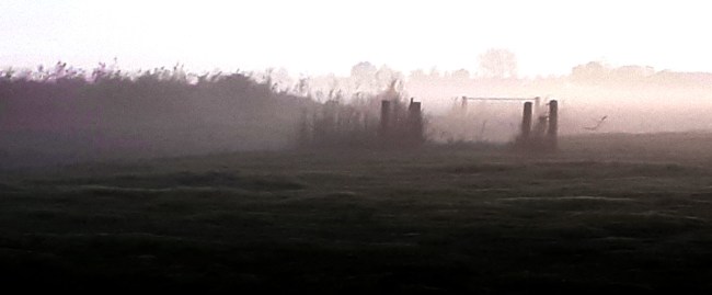 Wat ontdaan loop ik even later het veld af. In de verte lopen de jagers, richting de sloot die naar Bears loopt. Ze lopen evenwijdig aan het land van Jochum. Dat is een lang smal stuk, van acht hectare, vlak langs de Swette. Ik zie nu dat ze niet één, maar drie honden hebben. Die kunnen met elkaar een drijfjacht houden, de hazen achterna het riet in. Oppassen! Ik loop gelijk met de jagers op, zo’n honderd meter van ze af. Ik zie dat ze naar me kijken. Vlak bij de Bearservaart blijft het groepje staan. Ik weet dat hier de meeste dieren zitten. Het is het verst van de weg, en er komen zelden mensen. Er is aan twee kanten water. In die dooie hoek, tussen het riet, kunnen dieren echt tot rust komen. Daarom voelt het voor mij des te meer als heiligschennis. De jagers hebben al zoveel hectare, laat dit hoekje dan met rust! Gelukkig heb ik een zwart leren jas aan. Dat oogt stevig en stoer. De honden staan rustig naast hun bazen. De vuilgele hond kijkt mijn kant op, de kop in de nek, alsof hij me ruikt.