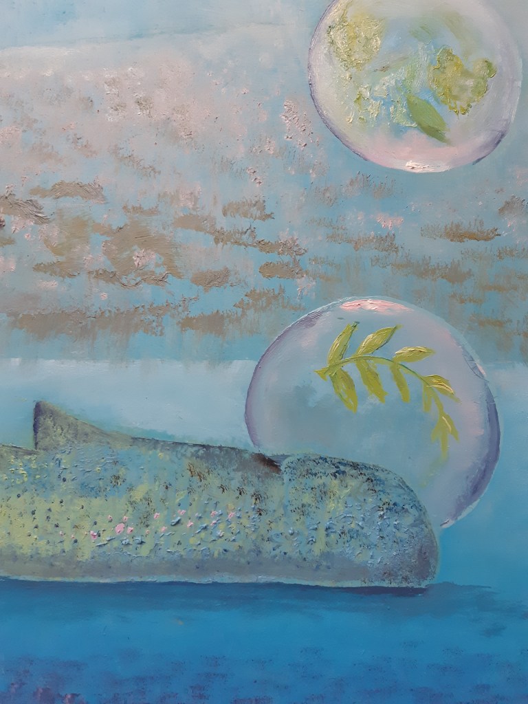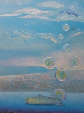 Daar sta ik dan. Nat van de kleddersneeuw en met koude voeten. Buiten drijven dikke wolkenpakken voorbij. Het lokaal van Wilde Wijk is donker in dit schaarse winterlicht, maar niet steenkoud. Het zweet staat op mijn rug van het fietsen en de koude wind heeft me tegelijkertijd doen rillen. Maar nu ben ik binnen. In de gangen hoor ik roepende kinderen. Die levendigheid bemoedigt mij. Ik doe de verwarming aan en pak mijn schilderspullen uit de kast in de hoek. Het is maar een klein hoekje, op een plank waar nog meer dingen liggen. Het is echt donker in het lokaal. Buiten valt een dikke bui, met hagelstenen. Ik zie niks. Met een druk op de lichtknop is het duister verdreven. Ik schrijf een berichtje aan de vrouw, die dit alles beheert: “Ik ben er.” Het lokaal wordt langzaam warm en ik kan beginnen.