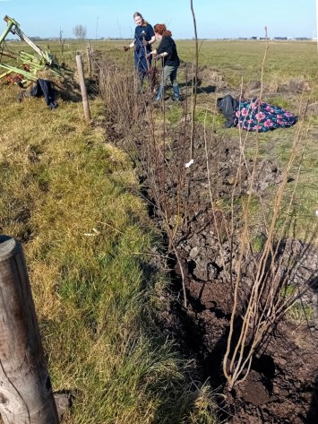 Het planten van een voederhaag in een Friese weide. Ik ben bij een andere boer.