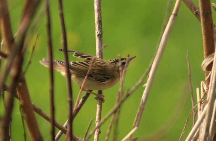 Wij zijn niet de enigen die de vliegen in de gaten houden. Deze rietzanger fotografeerde ik vlak voor mijn raam. Hij eet insecten die hij in de dichte vegetatie langs de oever verzamelt en keek even wat er hier te halen viel.