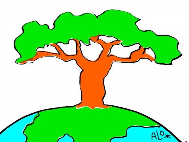 Naar de stad is bijna een uur fietsen. Het is een hele onderneming soms, zeker met veel bagage. Dit keer geef ik een klein optreden, een verhaal over bomen en mijn leven, met een uitstalling erbij. Het was passen en meten om alles mee te nemen, de boeken, de boomstronken en takken. Het is een klein zaaltje. Vijf mensen zitten uiteindelijk aan een lange tafel naar me te luisteren. Zojuist waren ze nog met iets anders bezig. Nu hebben ze hun bezigheden opzijgelegd en ik vertel het verhaal waarvoor ik uitgenodigd ben. Een beetje onwennig, met een publiek van maar vijf mensen. Ik weet niet wie ik aan moet kijken en dat maakt me verlegen. Ik vertel naar beste kunnen, een half uur lang. Dan kom ik tot het einde, alleen het liedje moet nog. Ik heb er opnieuw voor geoefend, het lied van de wilgeboom. Mijn gitaar ontbreekt helaas, de kar zat al zo goed als vol. Maar hier hangt er een aan de muur, dat wist ik. Vragend kijk ik naar degene die ernaast zit. Ze drukt hem verwachtingsvol in mijn handen. Mijn vingers beroeren zachtjes de snaren. Hij moet gestemd worden. Dat kan ik snel doen, het instrument is mij vertrouwd. De vijf toeschouwers wachten. Vlot stem ik een voor een de snaren. Dan kom ik bij de een na laatste, de B snaar. Er is iets mis. Het maakt me verward en zenuwachtig. Ik probeer het nog eens en nog eens. Hij reageert niet, de knop lijkt lam te zijn. De vrouw die me de gitaar aangaf begint te ongeduldig te roepen. Ik probeer het te negeren, maar het roepen houdt niet meer op. “Die gitaar is prima, wat doe je toch, begin nou maar gewoon, wat zit je daar nou allemaal te doen!” Ik zucht. Dan maar een liedje zonder gitaar. De vrouw kijkt boos en ontevreden. Toch zet ik opgewekt de eerste tonen in van mijn levenslustige lied en zing het uit tot het einde. Dan klinken de laatste woorden en is het optreden klaar. Een mager applausje volgt. Sommigen glimlachen, tot mijn opluchting. De vrouw doet haar best om vrolijk te kijken. Toch moet ze het daarna nog eens kwijt. Wat zat ik nou allemaal te doen met die gitaar. Daar was niks mis mee. Ze kijkt me kwaad aan. Denkt ze soms dat ik hem heb stukgemaakt? Ik wil iets terugzeggen maar beheers me. Ze moet het instrument maar eens laten nakijken door iemand die ze vertrouwt, zeg ik dan. Ondertussen denk ik aan het boekje dat ik gister las van de Boeddha, die zegt dat iedereen je vriend is. Geweld lost niks op. Terugschreeuwen ook niet. Ik denk aan het kleine gitaartje thuis. Dat had ik best cadeau willen doen, als de situatie anders was geweest. Nu houd ik verder mijn mond maar.