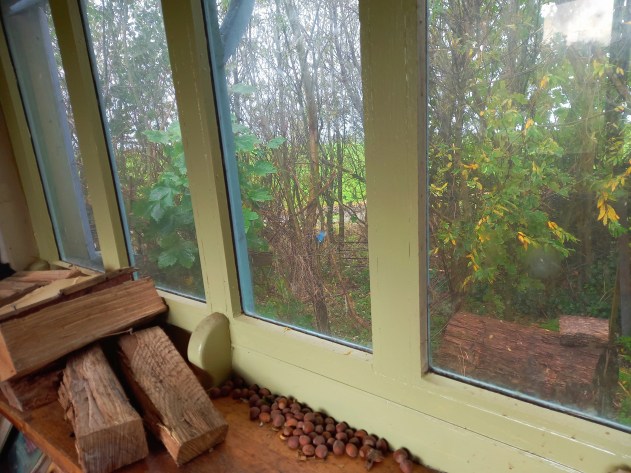 Het inpakken van de kar is nog een heel werk. Bij de kapstok zit ik op de grond om eerst mijn laarzen weer aan te doen, mijn regenbroek ligt naast me. Voor ik daarmee klaar ben gaat ineens het licht uit. “Ik ben hier nog bezig hoor!” roep ik. Een vrouwenstem roept haastig sorry, maar het licht gaat niet meer aan. Vreemd. Een man komt terug, hij komt in het donker naar me toe, wacht tot ik klaar ben en sluit de deur achter ons. Door de lange gang loop ik naar buiten met mijn kar. Dat was het dan. Nu gewoon maar weer naar huis. Gelukkig is de wind gaan liggen, dat scheelt. Anders had ik wind tegen gehad. De man wuift me vriendelijk na.