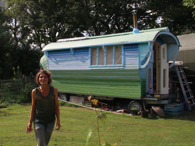 Ik open de luiken en loop direct door, naar het Verhalenpad. Met deze mist zullen er vast veel slakken zijn. Ze houden van ontkiemde lupinen en smullen graag van de rammenas. Ik vraag me af, zouden de plantjes weten dat ik eraan kom? Zouden ze zachtjes roepen: “Kom, kom, anders ben ik al mijn blaadjes kwijt!” Ik weet het niet. Zo voelt het wel. Ik loop iets sneller, blote voeten door het bedauwde gras. Boven mijn hoofd hoor ik het geflapper van tientallen vleugels. Het zijn de houtduiven die in de wilgen de nacht door hebben gebracht. Ze zijn nog altijd bang voor mensen. Ook voor mij. Ze vliegen de Swette over, naar de akker aan de overkant en strijken neer tussen de bleke staken van de mais, die er vorig jaar stond. Ik rol mijn pyamabroek op om hem droog te houden. De lange halmen aaien mijn benen en hij wordt toch nat. Het is nog vroeg en helemaal stil. Vanzelf loop ik nu veel langzamer, om alles in me op te nemen. De boterbloemen en de donkere halmen van het bloeiende gras. De twee platgetreden paden die naar het hek leiden, een kleine en een bredere. Vroeger liep ik over het hazenpad, maar dat doe ik nu niet meer. Ik ga nu altijd over het mensenpad en heb respect voor het hunne. Vlak voor het hek vallen de paden even samen, maar daarachter gaan de dieren linksaf, terwijl ik rechtdoor ga.