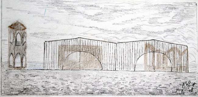 Ze zijn ze druk bezig. Het eerst bij de boerderij. Dat is vlak voor de deur van mijn vriend, dus ik kan alles volgen. Grond wordt aangevoerd met een vrachtwagen. Er is al gauw geen grassprietje meer te bekennen. In de pauze sta ik naast ze. Ik vertel dat ik vroeger schipper was. Schepen doen goed werk. Waar vaarwegen zijn, hoef je de grond niet te verpesten. “Bewaar de oevers voor later, vervoer over ’t water,” zeg ik. “Die wijsheid heb ik niet van mezelf” voeg ik toe. De oudste van de twee mannen lacht herkennend. Een mooie spreuk, vindt hij.