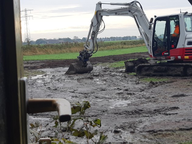 Het klimaat verandert. Als we niks doen, wordt de plek waar ik woon moerasland. Dat is niet de bedoeling. Dus komen ze de dijk ophogen. Dat moet van het Wetterskip. Op sommige plekken moet er wel 40 cm bij. Menige passant had er nog niet eens bij stil gestaan. Maar het is wel zo. De weg die naar de boerderij loopt, is een dijk. Door al die auto’s die hier rijden zakt alles in. Na al die jaren zijn dat enkele decimeters. Ook achter de boerderij moet er grond bij, anders zal het hele gebied erachter onder water komen te staan, in de toekomst. Er valt steeds vaker heel veel regen in één keer. Onze stijgers staan steeds vaker onder water. De sloten zijn nu al zo vol, dat het op sommige plekken gelijk staat aan het land. De grond is zompig.