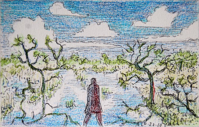 Dit is de plek waar ik ben. Elke plek is anders, door langer op een plek te zijn leer je het land veel beter kennen dan wanneer je er vluchtig, als een toerist, voorbij trekt. Waar ik nu ben, dat is dit oude hoogveengebied, dat al lang geleden is afgegraven.