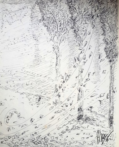 (Bovenstaande illustratie is een fragment van een tekening uit mijn boek: “Langs kantelende wegen.” https://www.uitgeverijlouise.nl/index.php?id=4&tx_sanwarebooks_pi1[book]=82 )